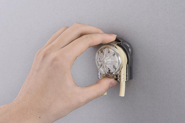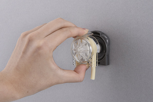 Das Gehäuse kann ohne Verwendung von Werkzeugen einfach montiert und entfernt werden. So kann auch eine Wartung wie beispielsweise ein Schlauchaustausch schnell durchgeführt werden.